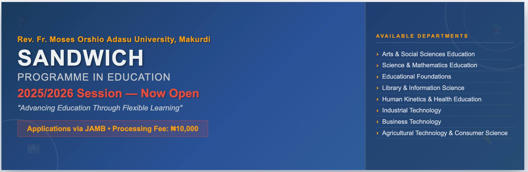 Advertisement of Sandwich Programme in Education — 2025/2026 Session
