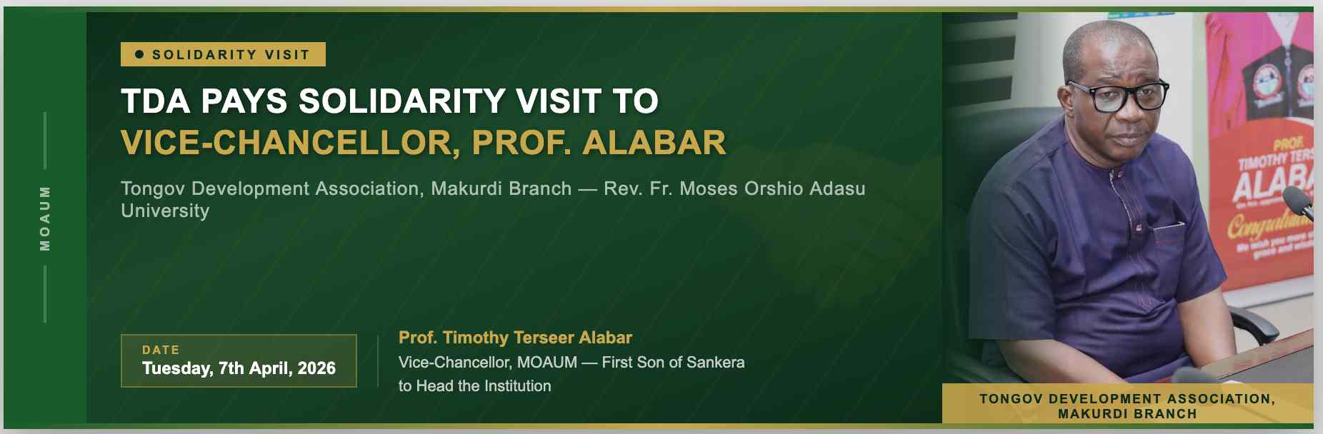 MOAUM Get's New Vice Chancellor: Prof. Timothy Terseer Alabar, the 8th Vice Chancellor MOAUM.